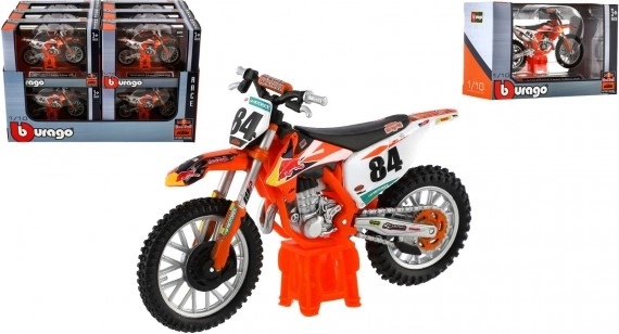 De Bburago motorfiets valt op door zijn gedetailleerde afwerking, die een authentieke uitstraling geeft aan de KTM 450 SX-F Factory Edition 2018.