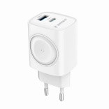 Zoek je een universele en snelle oplader voor telefoon, oordopjes en smartwatch? De Gembird 20 W combineert USB‑C met Power Delivery en USB‑A met Quick Charge 3.0, zodat hij de meeste moderne smartphones en accessoires betrouwbaar en efficiënt oplaadt. De magnetische module maakt het gemakkelijk om Apple Watch kabelvrij op te laden.