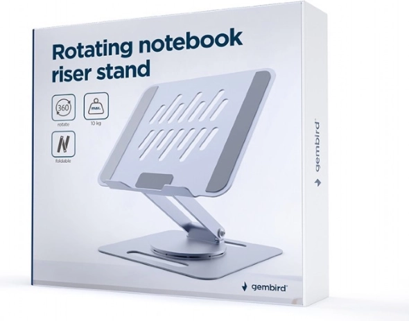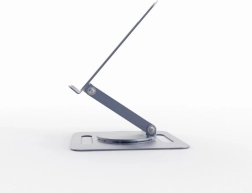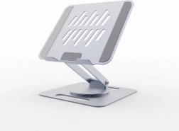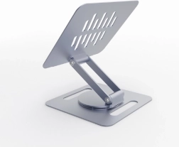 Universele standaard voor laptops tot 15,6″ in een elegante grijze kleur met traploze hoogteverstelling, 360° rotatie en een stabiele metalen constructie. Het open platform zorgt voor uitstekende koeling, terwijl siliconen pads en een veiligheidsrand het apparaat stevig op zijn plaats houden. Dankzij het opvouwbare ontwerp ideaal voor bureau en reizen.