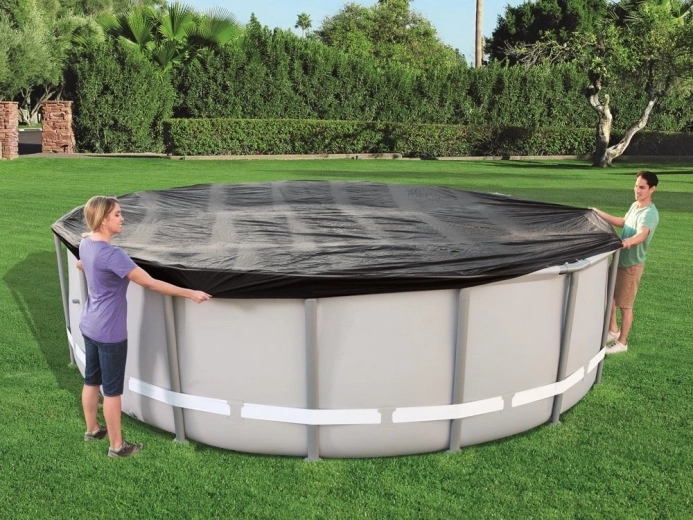 Universeel afdekzeil Bestway is de perfecte bescherming voor uw zwembad met een constructie van een diameter van 488 cm of van het type Hydrium 460 cm. Dit afdekzeil beschermt het zwembad tegen insecten, vogels, bladeren en lichte regen terwijl het ook thermische isolatie toevoegt.