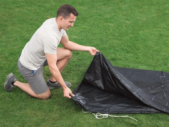 Beste bescherming voor uw zwembad met constructie: Dit universele afdekzeil van Bestway biedt uw zwembad betrouwbare bescherming tegen insecten, vogels, bladeren en lichte regen.