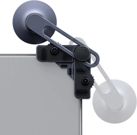 Twee klemarmen met knoppen bevestigen de houder veilig op schermen met een dikte van 7,5–14 mm. Het hangende design belemmert het zicht op het autoscherm niet.