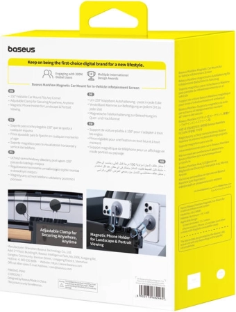 De BASEUS MaxView is een premium magnetische autohouder voor montage aan het autoscherm, met een modern hangend ontwerp dat het zicht op het infotainmentscherm niet belemmert. Krachtige neodymiummagneten met een trekkracht tot 17 N en de interne vloeibare siliconen zorgen voor een stevige en zachte bevestiging zonder krassen.