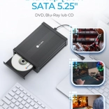 De externe behuizing IB-525-U3 maakt het mogelijk om je 5,25-inch SATA-stations zoals DVD-, Blu-ray- of oude cd-drives te gebruiken in een elegante zwarte behuizing. Snelle gegevensoverdracht tot 5 Gbit/s dankzij USB 3.2 Gen 1-aansluiting.