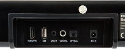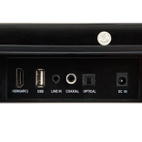 - HDMI (ARC), optische ingang (Toslink), coaxiaal (Coaxial), USB, line-in (AUX)