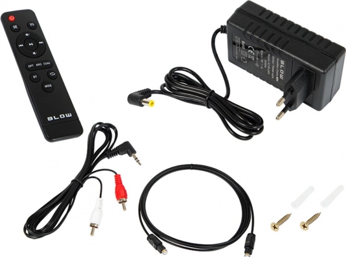 - soundbar, afstandsbediening, voedingsadapter, bekabeling, montagematerialen