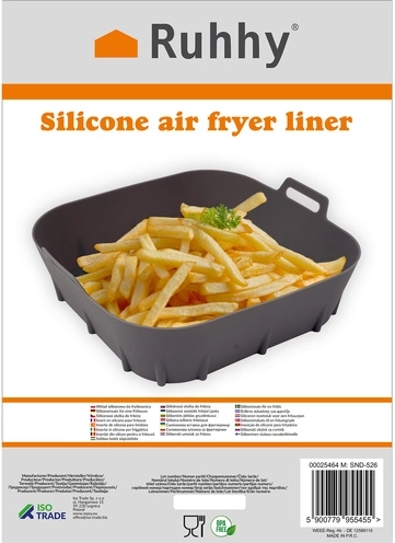 De siliconen inzet voor de heteluchtfriteuse is een uitstekende oplossing voor dagelijks koken en bakken. De inzet heeft een anti-aanbaklaag, waardoor voedsel niet blijft kleven en schoonmaken eenvoudiger wordt. Dankzij het duurzame materiaal is de inzet hittebestendig en gemakkelijk te reinigen, zowel met de hand als in de vaatwasser.