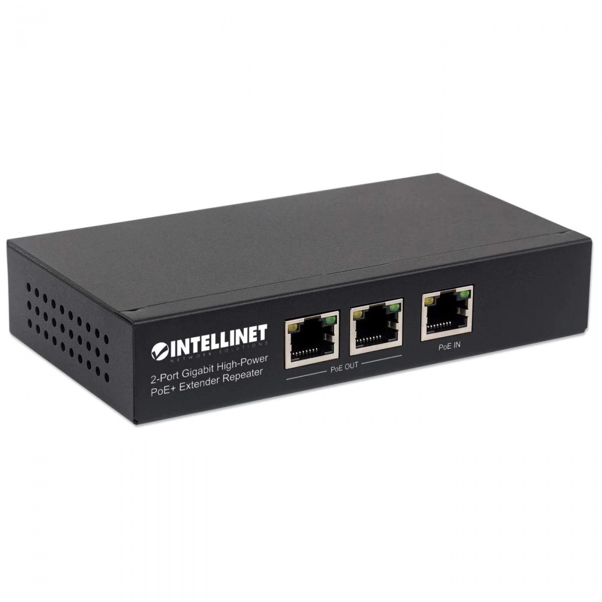 Intellinet 2-Port High-Power PoE+ Extender maakt eenvoudige netwerkuitbreiding mogelijk, voorziet stroom en data voor twee PoE-apparaten en verdubbelt het bereik van 100 naar 200 meter.