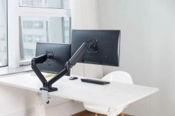De standaard maakt eenvoudige en soepele hoogte- en hoekinstellingen van de monitoren mogelijk, wat voor meer comfort zorgt tijdens de werkdag.