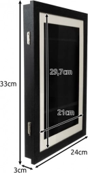 De installatie is snel en zonder boren – in de verpakking vind je sporenloze haakjes met pinnetjes die de muur niet beschadigen. Veilige acrylen “ruiten” en duurzaam MDF zorgen voor een lange levensduur, ook in een kindvriendelijke omgeving. Het product is bovendien zorgvuldig beschermd voor transport met kunststof hoekbeschermers en een stevige doos.