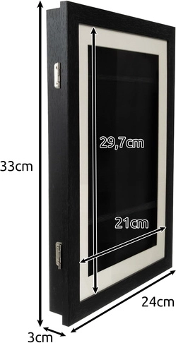 Stijlvolle lijst voor kindertekeningen in A4-formaat, met ruimte voor tot 150 werkjes. Dankzij het openklapbare front en de magnetische sluiting wissel je de tentoonstelling snel en eenvoudig zonder de lijst van de muur te halen. Veilige materialen (acryl in plaats van glas, MDF) en eenvoudige montage zonder boren met behulp van sporenloze haakjes maken deze lijst ideaal voor de kinderkamer.