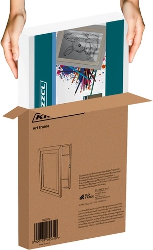 - Lijst, passe-partout, 3 sporenloze haakjes, beschermhoeken, kleurrijke verpakking, bruine verzenddoos