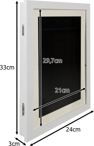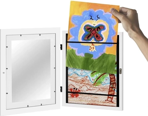 Maak thuis een mini-galerij! Deze praktische lijst voor kindertekeningen in A4-formaat biedt ruimte voor tot 150 tekeningen, heeft een openslaande voorkant met magnetische sluiting voor eenvoudig wisselen zonder de lijst van de muur te halen en beschermt de werken met elastische banden. Dankzij de eenvoudige montage zonder boren is hij ideaal voor kinderkamers en woonkamers.