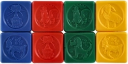Set van acht kleurrijke plastic blokken met dierenmotieven, die de motoriek en fantasie van kinderen ontwikkelen. Dit educatieve speelgoed zal alle kleine jongens en meisjes betoveren.