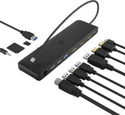 Compact en krachtig: het USB‑C 12‑in‑1 dockingstation breidt je laptop uit met een drievoudige videouitgang, snelle gigabit‑LAN, meerdere USB‑poorten en kaartlezers. Ideaal voor kantoor en onderweg – sluit alles aan met één kabel en werk productief zonder beperkingen.