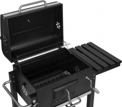 Het ruime grilloppervlak van 53×34 cm en het warmhoudrooster maken het mogelijk om porties voor meerdere personen tegelijk te bereiden. Praktische planken, haken en een flesopener houden kruiden en gereedschap binnen handbereik. De metalen constructie met poedercoating is bestand tegen hoge temperaturen en weersinvloeden, en de transportwielen maken verplaatsen in de tuin gemakkelijk.