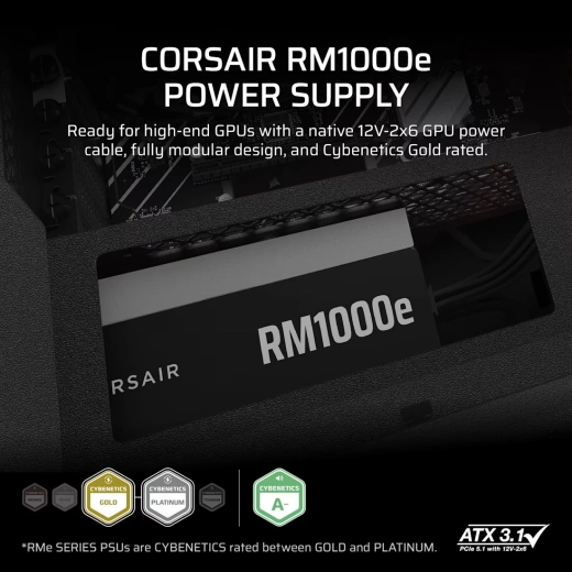 De volledig modulaire Corsair RM1000e voedingsunit uit de RMe-serie is ontworpen voor lage geluidsproductie en maximale efficiëntie. Deze PSU is een ideale keuze voor veeleisende gebruikers die op zoek zijn naar een betrouwbare en krachtige eenheid.