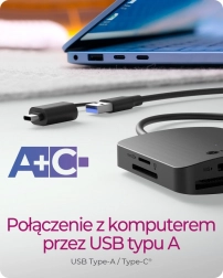Universele aansluiting: Het apparaat is uitgerust met USB-kabels Type-A en Type-C voor extra flexibiliteit en comfort. Pas je aan verschillende aansluitmogelijkheden aan zonder extra adapters.