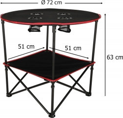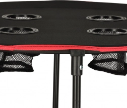 Het speciale ontwerp met openingen voor drankjes zorgt ervoor dat je drankje altijd binnen handbereik is en de tafel stabiel blijft. Het is de ideale keuze voor wie comfort en functionaliteit tijdens kamperen, picknicks of vissen waardeert. Zijn uitzonderlijke uiterlijk en functionaliteit maken het een opvallend product op de markt.