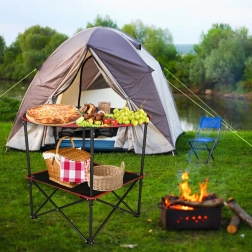 Opvouwbare toeristentafel is ontworpen om je reisgenoot te zijn. Hij is licht en compact, wat hem tot de ideale keuze maakt voor iedereen die graag buiten is. Biedt een comfortabele plek om te eten, te ontspannen of je te vermaken, en neemt opgevouwen zeer weinig ruimte in. Weerbestendig, dus je kunt hem zonder zorgen meenemen naar de bergen, het meer of het strand.