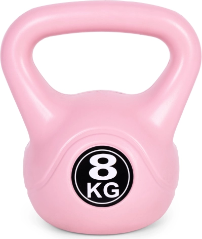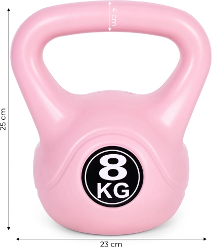 Universele roze kettlebell met een gewicht van 8 kg van het merk MODERNHOME voor effectieve krachttraining, functionele oefeningen en revalidatie. Dankzij het ergonomische handvat, het verplaatste zwaartepunt en de platte onderkant biedt hij een veilige grip, betere stabiliteit en activatie van de diepe spieren. De duurzame uitvoering met een kunststof omhulsel en cementvulling is ideaal voor zowel beginners als gevorderden.