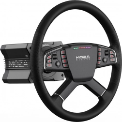 Veertien RGB-knoppen met pictogrammen voor trucksimulatie, 10 LED’s voor toerental en een paar aluminium draaiknoppen samen met ultradunne joysticks bieden directe toegang tot functies. In de software MOZA Pit House stel je verlichting, mapping en feedback precies in naar je voorkeur.