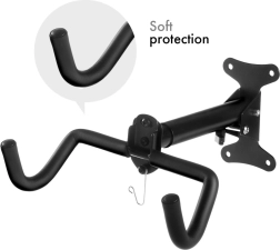 De houder wordt met vier meegeleverde pluggen aan de muur bevestigd en kan na het afnemen van de fiets eenvoudig worden ingeklapt zodat hij niet in de weg staat. De haken zijn voorzien van een beschermlaag die het frame tegen krassen beschermt. Er is ook de mogelijkheid om de lengte van de houder naar behoefte aan te passen.