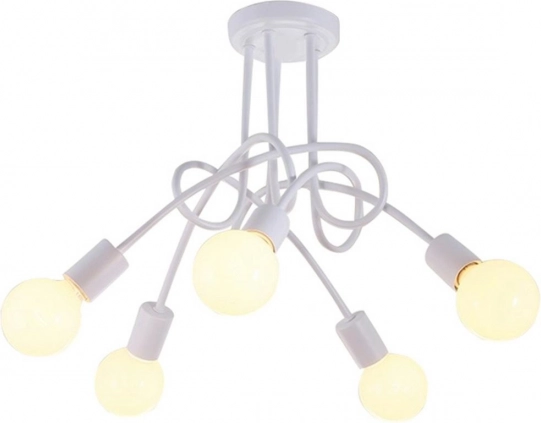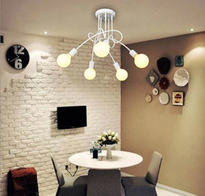 Deze moderne lamp biedt vijf afzonderlijke E27-fittingen, waardoor je eenvoudig de lichtintensiteit en sfeer kunt kiezen. Het minimalistische metalen ontwerp in wit past perfect in hedendaagse interieurs en komt prachtig tot zijn recht met zowel klassieke als design E27-lampen.