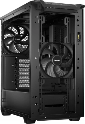 Het mesh‑front en het bovenpaneel ondersteunen een sterke luchtstroom. Drie voorgeïnstalleerde Pure Wings 3 140 mm PWM‑ventilatoren leveren hoge luchtdruk bij een laag geluidsniveau.