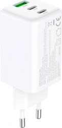 - 3 uitgangen: 2× USB‑C (20 W en 65 W) + 1× USB‑A (18 W)