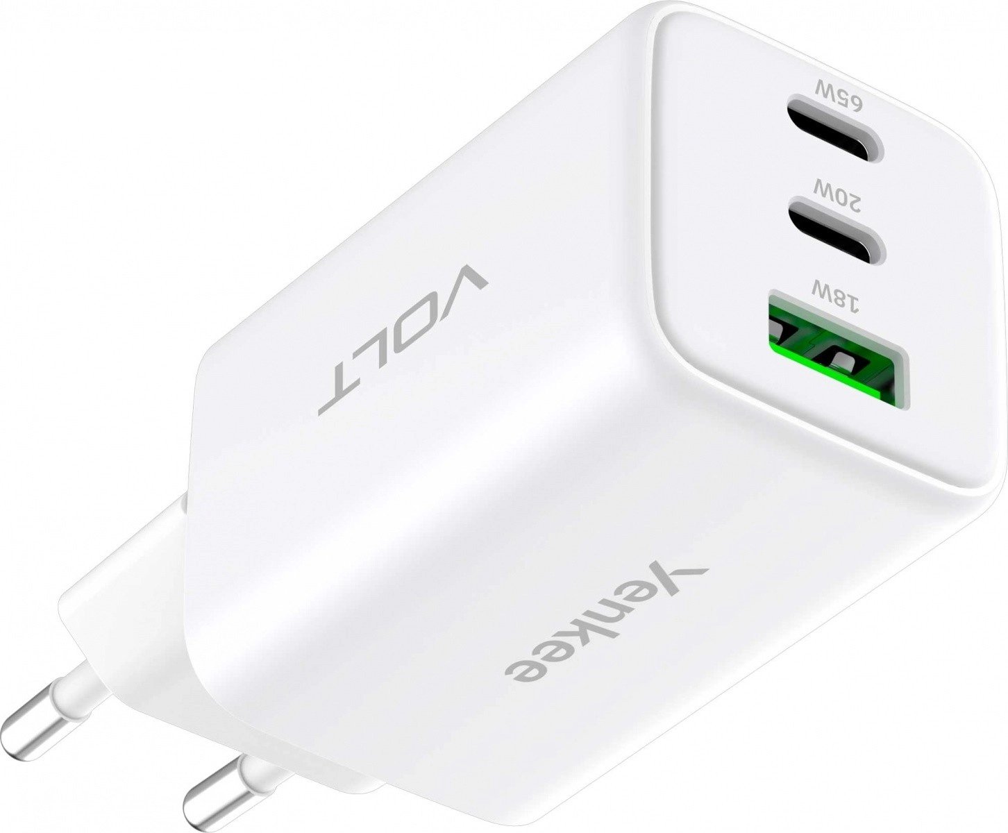 De compacte en krachtige VOLT‑lader met GaN-technologie biedt een totaalvermogen tot 65 W en drie uitgangen (2× USB‑C + 1× USB‑A) voor het gelijktijdig opladen van meerdere apparaten. Ondersteunt Power Delivery 3.0 en Quick Charge 4.0, zodat laptops, tablets en smartphones snel en veilig worden opgeladen – één universele lader voor al uw apparaten.