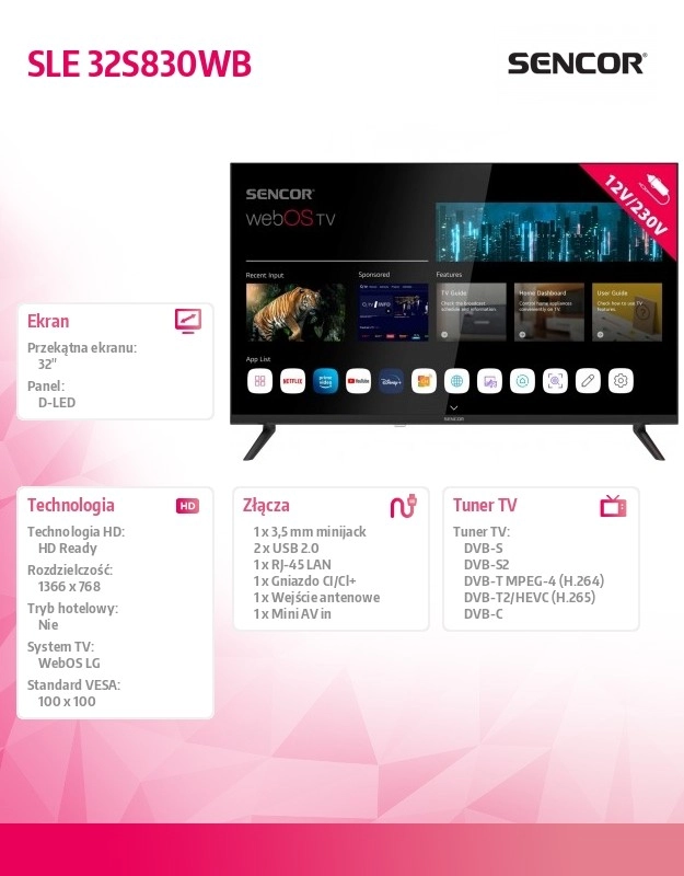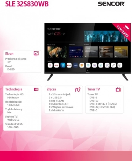 De praktische dual‑voeding 230 V / 12 V (adapter meegeleverd) vergroot de inzetbaarheid – ideaal voor caravan, boot of vakantiehuis. Rijke connectiviteit met 3× HDMI (1× ARC, CEC), 2× USB, LAN, CI+ en een 3,5 mm uitgang laat je console, schijf en soundbar eenvoudig aansluiten. Geluid met Dolby Digital Plus en een totaalvermogen van 18 W zorgt voor een stevige volume‑output en heldere dialogen.