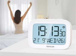 De digitale wekker van Sencor brengt modern design en functionaliteit in elke slaapkamer of kantoor. Het grote scherm zorgt voor eenvoudige leesbaarheid van tijd, datum en temperatuur. Radiogestuurde tijdinstelling DCF77 zorgt voor precieze tijd zonder handmatige aanpassing.