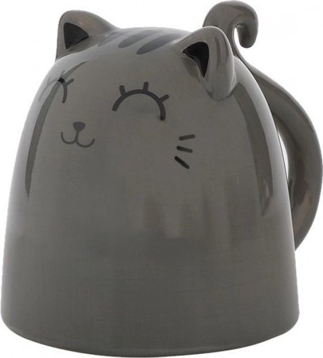 Deze schattige keramische mok in de vorm van een kat maakt elke kattenliefhebber blij. Hij heeft een comfortabel oor in de vorm van een staart en een minimalistisch kattengezicht. Ideaal voor je ochtendkoffie of thee en als stijlvol cadeau. Grijs design, comfortabele grip en originele uitstraling voor plezier bij elke slok.