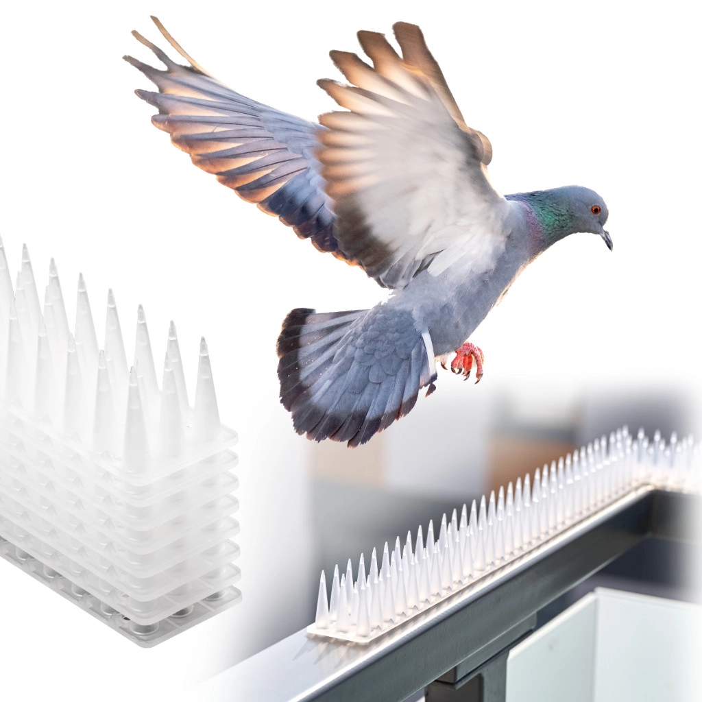 De dicht geplaatste pinnen verhinderen dat vogels kunnen landen, zonder hen te verwonden. Ideaal voor duiven en andere stadsvogels.