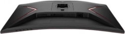 Het gebogen design en de standaard met rode accenten creëren een elegante look die past bij elke gaming setup.