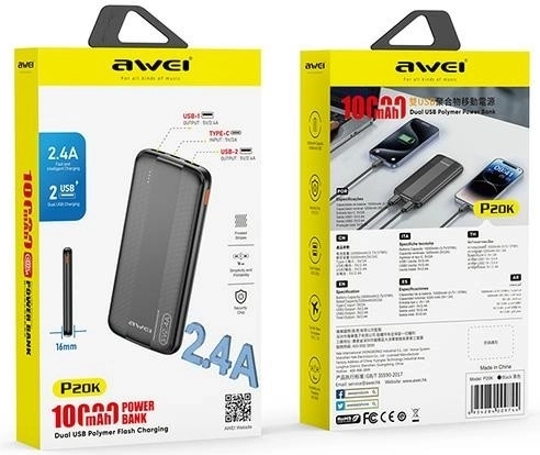 De Awei P20K powerbank heeft een grote capaciteit van 10000 mAh, ideaal voor lange reizen en geschikt voor het herhaaldelijk opladen van je telefoon en andere apparaten. Je kunt werken of ontspannen zonder je zorgen te maken over het zoeken naar stroom.