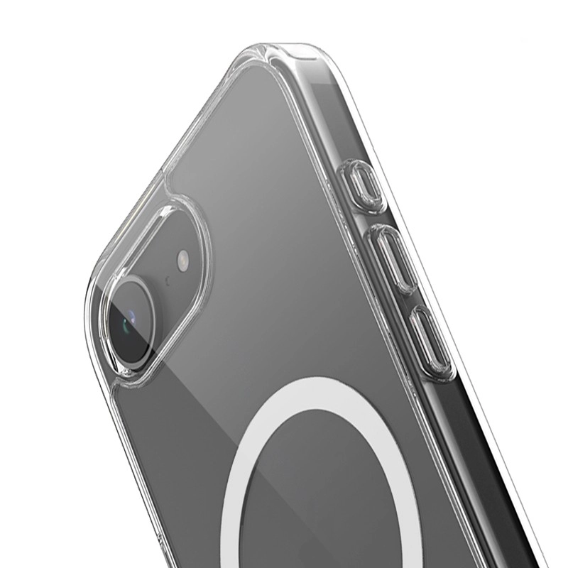 De transparante constructie beschermt de telefoon en is volledig compatibel met MagSafe-opladers.