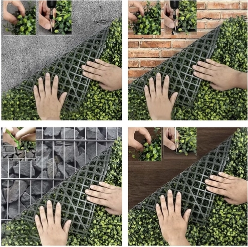 - Smaakvol geplaatste bladeren imiteren de natuurlijke uitstraling van een levende heg.
