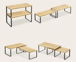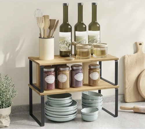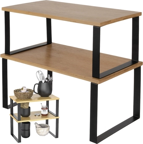 Met deze set rekken organiseer je je keuken praktisch en stijlvol. Het bamboemateriaal zorgt voor sterkte en stabiliteit, terwijl de metalen ondersteuning een lange levensduur en stevigheid biedt.