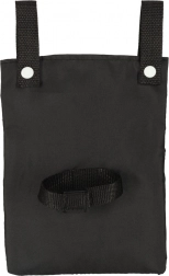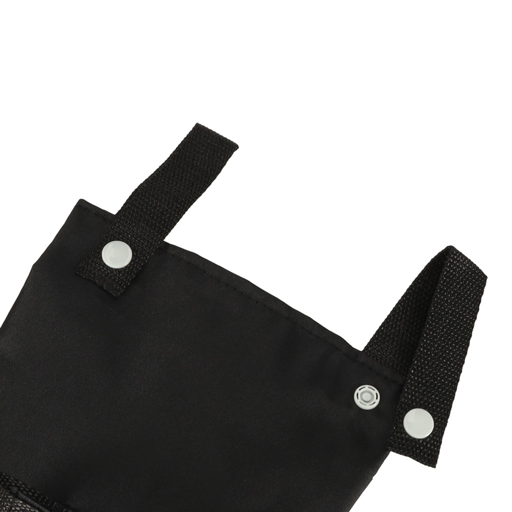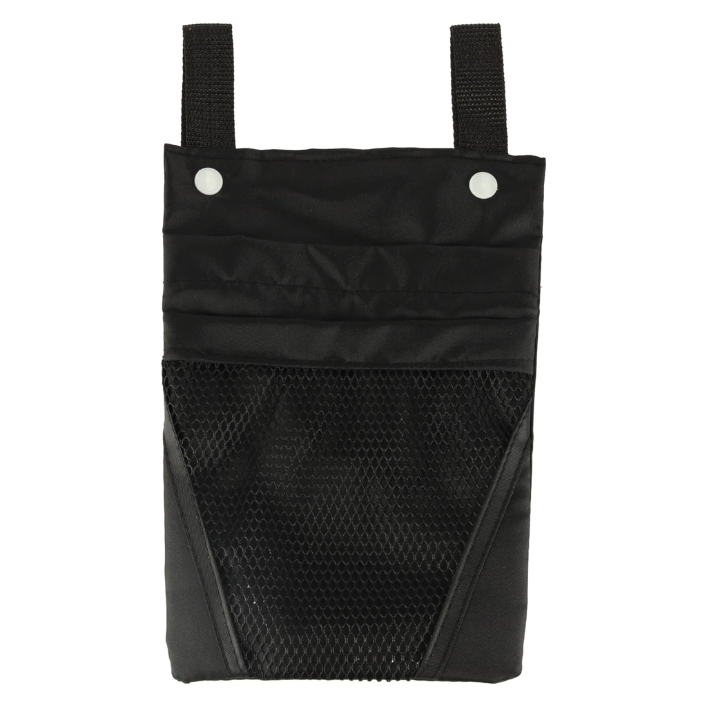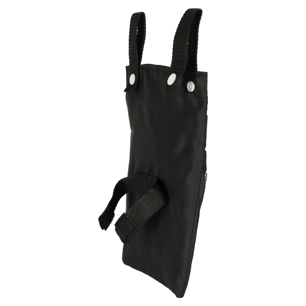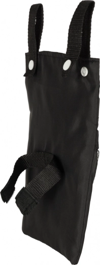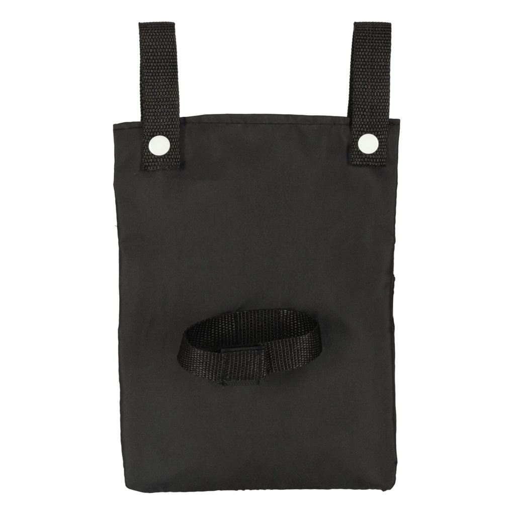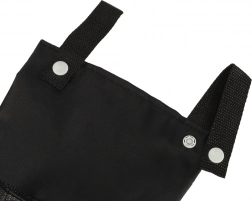 Twee bovenste lussen met drukknoopsluiting en een achterste klittenbandstrip houden de tas stevig op zijn plek, ook op kinderkopjes of grind.
