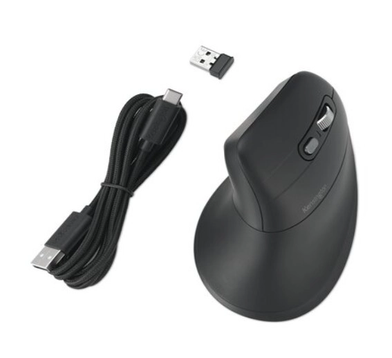 De ergonomische verticale muis Kensington Pro Fit is vormgegeven om de pols in de juiste positie te houden en comfort te bieden tijdens langdurig gebruik. De muis is vervaardigd uit materialen met 55% gerecycled plastic. Compatibel met Windows, macOS en Chrome OS.