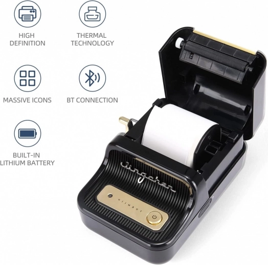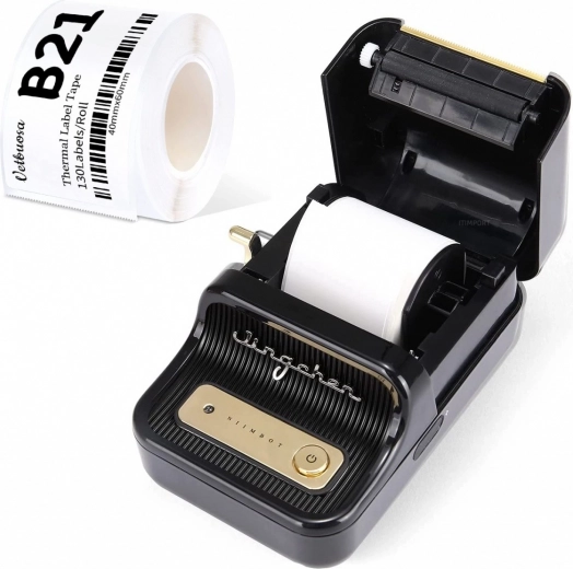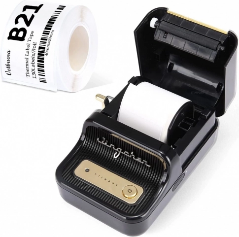 De NIIMBOT B21S is een betrouwbare draagbare thermische labelprinter die geen inkt of toner nodig heeft. In de doos vindt u een startrol labels 50 × 30 mm, een USB‑C oplaadkabel en een handleiding. De printer ondersteunt een breed scala aan materialen (papier en folie, standaard en thermische zelfklevende) en is ideaal voor markeringen op kantoor, in huis, magazijn en retail.