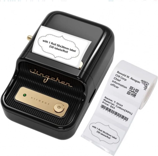 - NIIMBOT B21S printer, 1× rol labels 50 × 30 mm, USB‑C kabel, handleiding