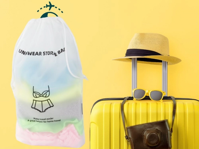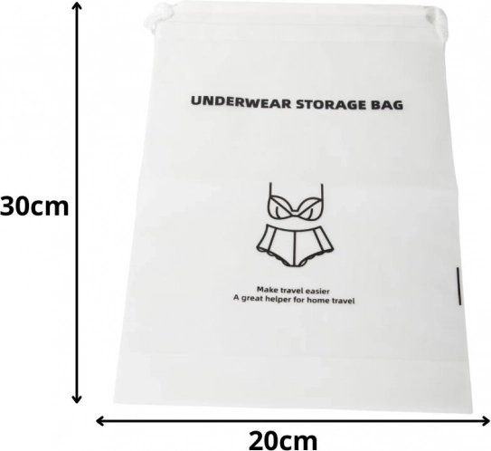 Houd orde tijdens het reizen met deze praktische organizer voor ondergoed. Dankzij het waterdichte materiaal blijft de inhoud droog en schoon, terwijl het lichte ontwerp en de treksluitingen met koord zorgen voor eenvoudig gebruik. Ideaal voor in de koffer, het vliegtuig en de sporttas.