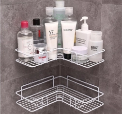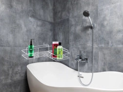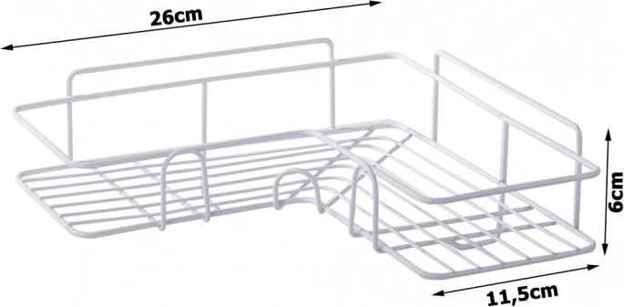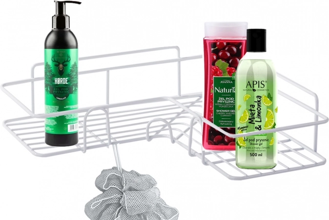 Deze hoekplank voor de badkamer is ontworpen om de ruimte in de douche of boven het bad optimaal te benutten. De open draadconstructie zorgt voor snelle waterafvoer en eenvoudig schoonmaken, terwijl verhoogde randen voorkomen dat flesjes omvallen. Het minimalistische witte design laat zich makkelijk combineren met de meeste badkamerinterieurs.