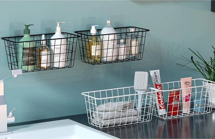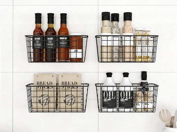 De montage is in een handomdraai klaar – gebruik eenvoudig 2 zelfklevende muurhaken, zonder boren of gereedschap. De mand kan ook los worden gebruikt als plank/shelf organizer. Het minimalistische design past moeiteloos in zowel moderne als klassieke interieurs.