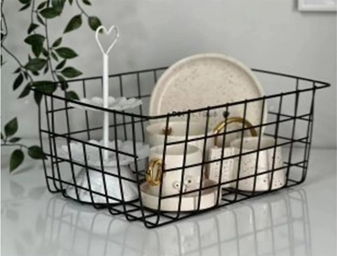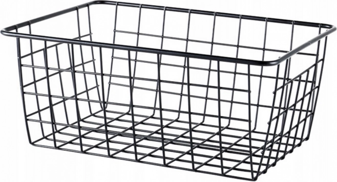 Deze ruime draadmand van gelakt metaal is ideaal voor dagelijkse organisatie – van etenswaren en kruiden tot toiletartikelen of kantoorspullen. Het minimalistische ontwerp in het zwart past in moderne en industriële interieurs.