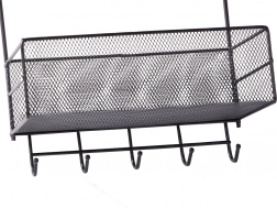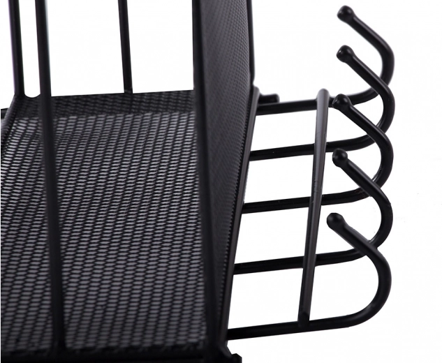 Het minimalistische, zwarte design past in zowel moderne als klassieke interieurs en de robuuste metalen constructie garandeert stabiliteit en een lange levensduur. De open gaasconstructie zorgt voor luchtcirculatie, snel drogen en goede zichtbaarheid van opgeborgen items.