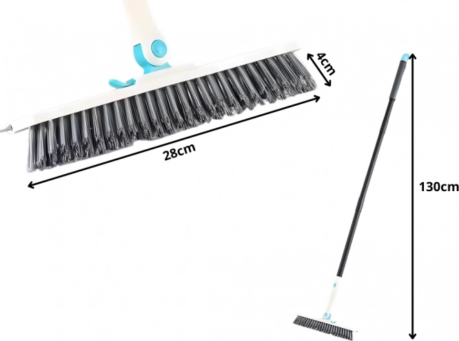 Ergonomie en bereik: de lange steel tot 130 cm spaart je rug, het draaibare scharnier helpt schoonmaken langs plinten en in hoeken, en vijf rijen sterke synthetische borstelharen verhogen de effectiviteit op uiteenlopende oppervlakken (keramische tegels, steen, beton, vinyl).